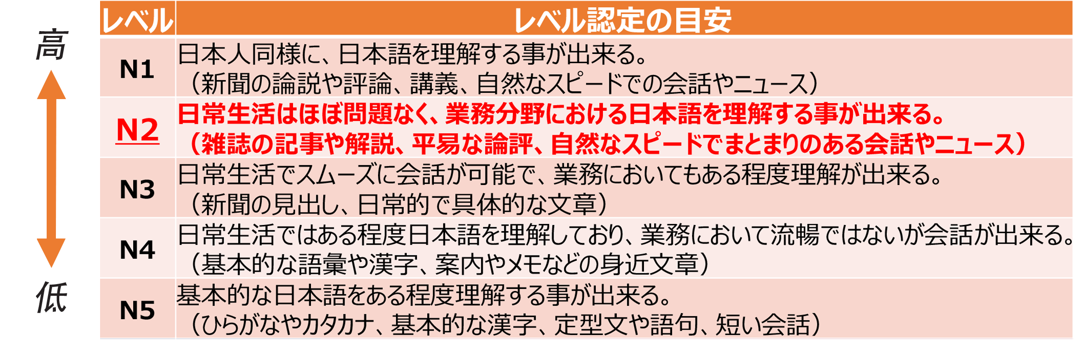(2) 日本語レベル